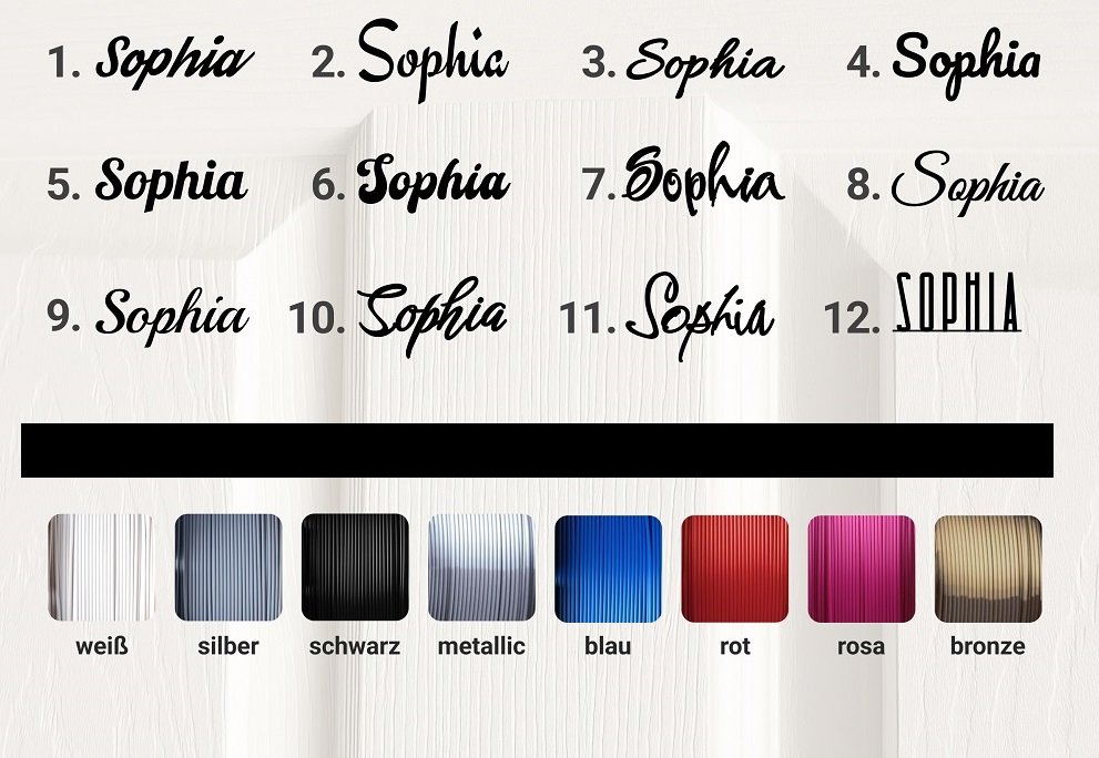 Room door personalized with Name: choose different colors. For example, classic minimalist white, silver and matte black name signs for doors. You can add any text and choose different cursive fonts!