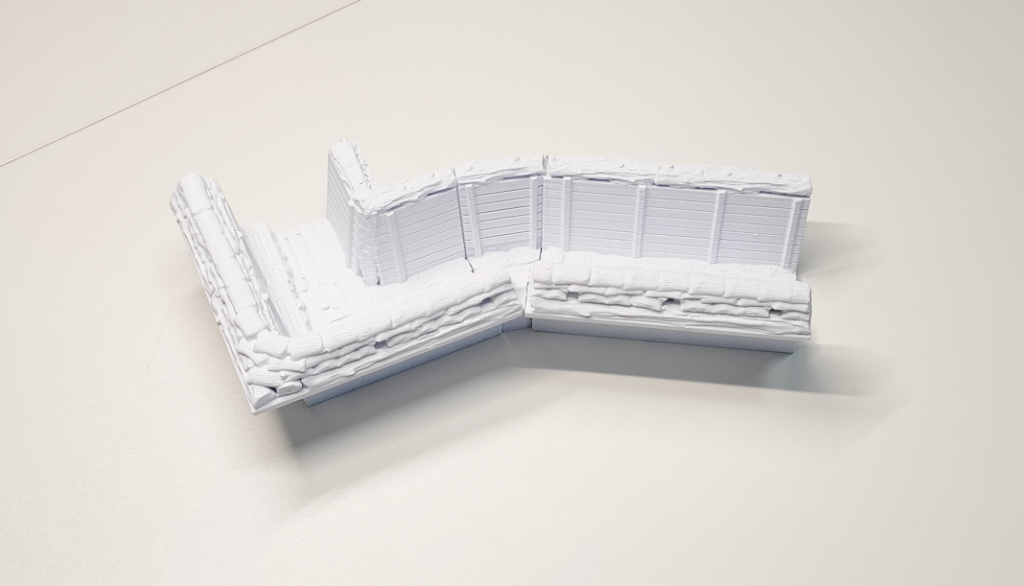 Ready-made trench systems — cast in resin, molded in plastic, or produced via high-resolution 3D printing — are designed using mathematical models aligned with standardized miniature scales.